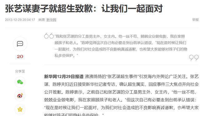 新华网2013/12/29发布实践《张艺谋妻子就超生致歉:让咱们一皆濒临》等官方媒体新闻,但为进步著作可读性,细节可能存在润色,请缄默阅读,仅供参考!